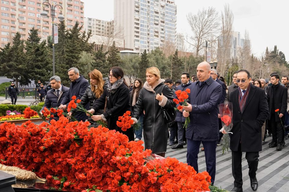 Nazirliyin İctimaiyyətlə əlaqələr şöbəsindən AZƏRTAC-a verilən məlumata görə, abidənin önünə gül dəstələri düzülüb, Xocalı soyqırımı qurbanlarının əziz xatirəsi ehtiramla anılıb.