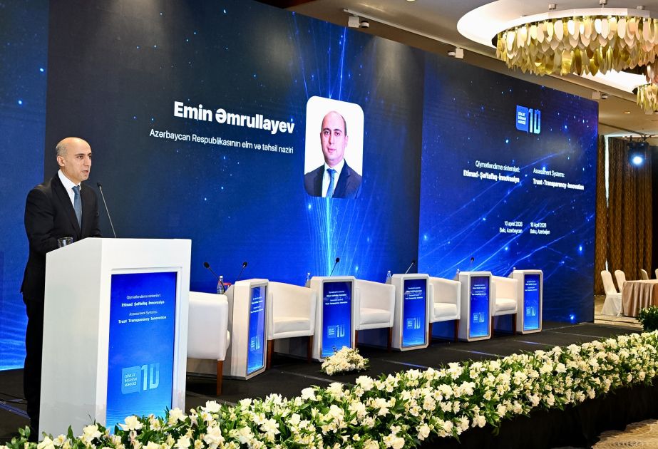 AZƏRTAC xəbər verir ki, bu fikirləri elm və təhsil naziri Emin Əmrullayev DİM-in 10 İllik yubileyinə həsr olunmuş “Qiymətləndirmə sistemləri: etimad, şəffaflıq və innovasiya” mövzusunda beynəlxalq elmi-praktik konfransda deyib.