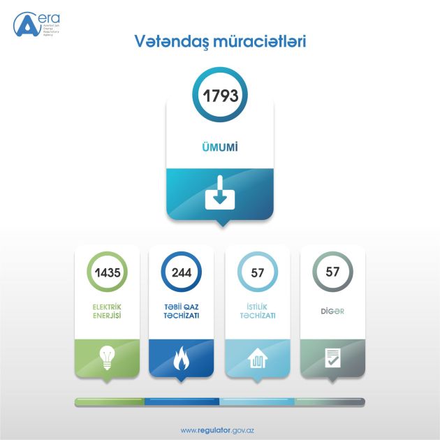 Cari ilin I rübü ərzində istehlakçıların hüquqlarının qorunması, abonentlərin elektrik və istilik enerjisi, təbii qazla təchizatı və digər məsələlərlə bağlı Enerji Məsələlərini Tənzimləmə Agentliyinə (EMTA) bilavasitə və Energetika Nazirliyindən 1793 müraciət daxil olub.