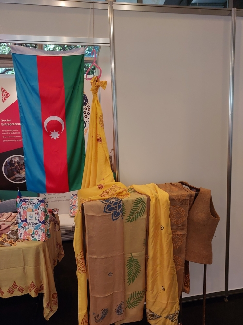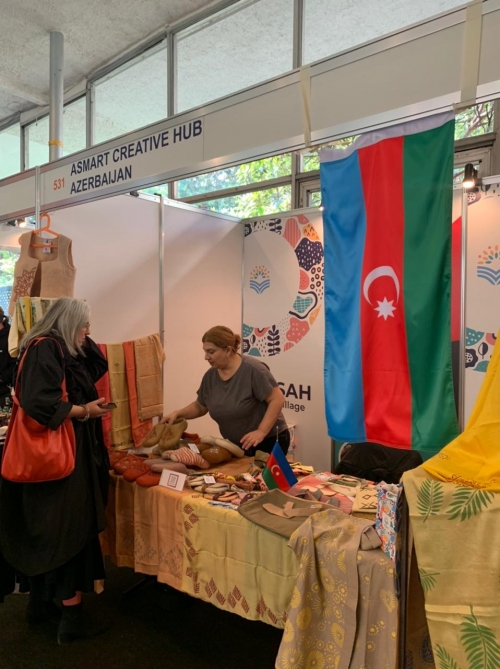 “Pirşah” şirkəti sərgidə Azərbaycan sənət ustalarının toxuculuq, rəngkarlıq işlərindən ibarət məhsullar təqdim edir.