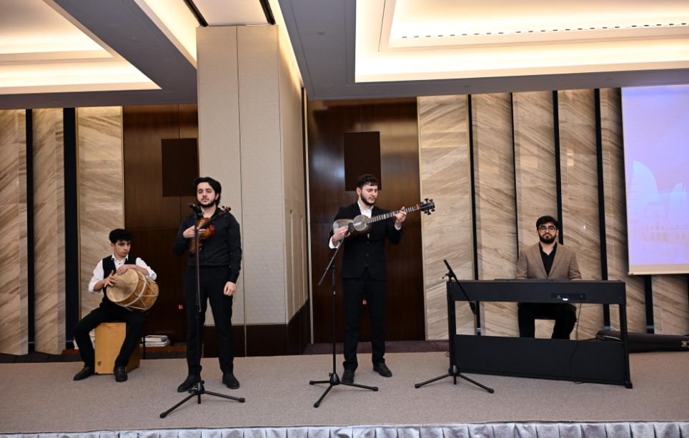 AZƏRTAC xəbər ki, tədbir Azərbaycanın Dövlət Himninin səsləndirilməsi, Ulu Öndər Heydər Əliyevin və Vətən uğrunda canından keçmiş şəhidlərin əziz xatirəsinin bir dəqiqəlik sükutla yad edilməsi ilə başlayıb.