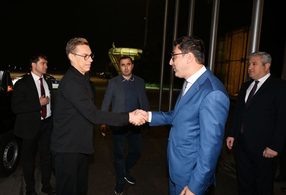 AZƏRTAC xəbər verir ki, Heydər Əliyev Beynəlxalq Aeroportunda Finlandiya Prezidentini Azərbaycanın gənclər və idman naziri Fərid Qayıbov və digər rəsmi şəxslər qarşılayıblar.