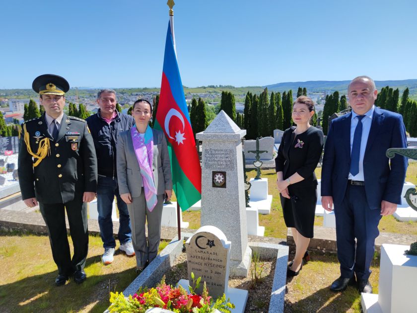 AZƏRTAC xəbər verir ki, Azərbaycanın Fransadakı səfiri Leyla Abdullayevanın rəhbərliyi ilə səfirliyin bir neçə diplomatı Fransanın azadlığı uğrunda canalarını qurban vermiş azərbaycanlı partizanların xatirəsini yad etmək üçün Rodez şəhərində dəfn edilmiş Mişel Hüseynovun qəbrini, eləcə də azərbaycanlı əsgərlərin saxlanıldığı əsir düşərgəsinin binasını və əsgərlərimizin güllələndiyi məkanları ziyarət ediblər.
