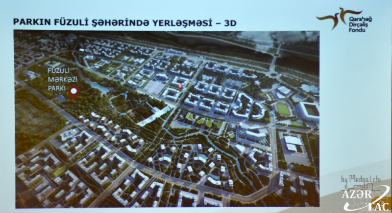 “By Medgalchi” MMC-nin direktoru, layihə rəhbəri Hüseyn Medqalçı Füzuli Mərkəzi Parkının layihəsi haqqında görüş iştirakçılarına geniş məlumat verib. Qeyd edilib ki, müxtəlif ağac növlərinin və dekorativ kolların əkiləcəyi park sahəsində istirahət zonaları, açıq yaşıllıq sahələri, piknik və idman məqsədilə istifadə ediləcək zonalar, amfiteatr, kafe-restoranlar və s. kimi obyektlərin yaradılması nəzərdə tutulub.