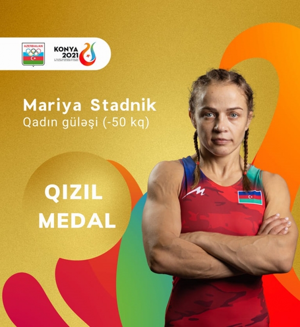 Güləşçimiz Mariya Stadnikə qızıl medalı MOK-un baş katibi Azər Əliyev təqdim edib