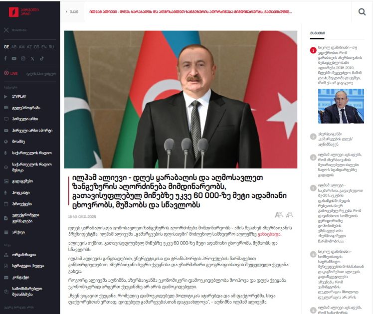 Gürcüstanın nüfuzlu 1tv.ge, 24news.ge, aktual.ge, interpress.ge portalları Azərbaycanda Vətən Müharibəsində Qələbənin 5-ci ildönümü ilə bağlı təşkil olunan Hərbi parad və bayramla bağlı xəbərlər yayıblar.