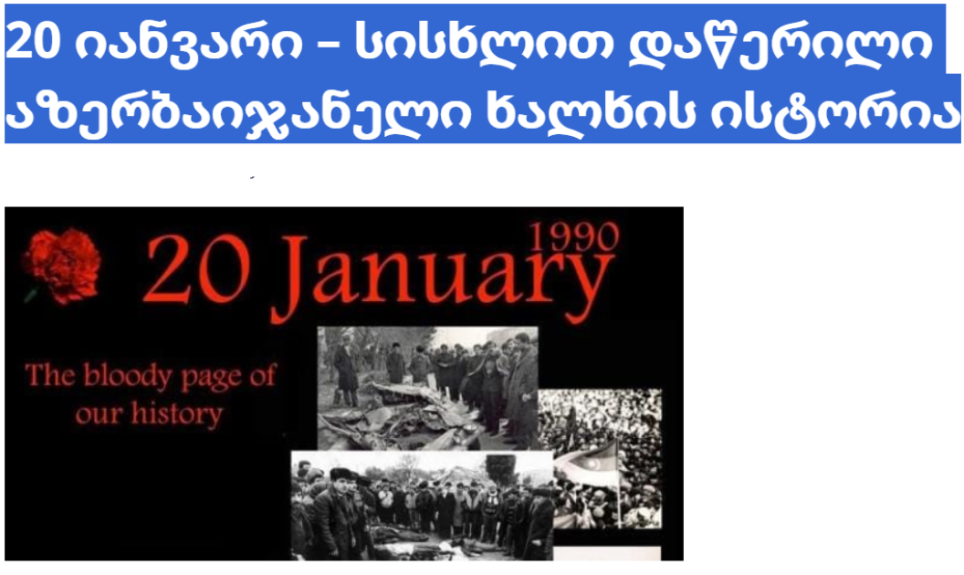 Acarıstan Muxtar Respublikası ərazisində dərc olunan və geniş oxucu auditoriyasına malik ajaratimes.ge portalında "20 Yanvar - Azərbaycan xalqının qanla yazılmış tarixi" sərlövhəli məqalə dərc olunub.