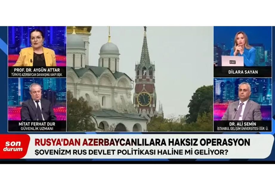 Baş verənlərlə bağlı telekanalın aparıcısı sual verib: “Azərbaycanlılara qarşı təzyiqlərin və hücumların səbəbi nədir? Baş verənlər sadəcə təsadüfdürmü, yoxsa Rusiyada vahid dövlət şovinizm siyasətinin bir hissəsidir?”