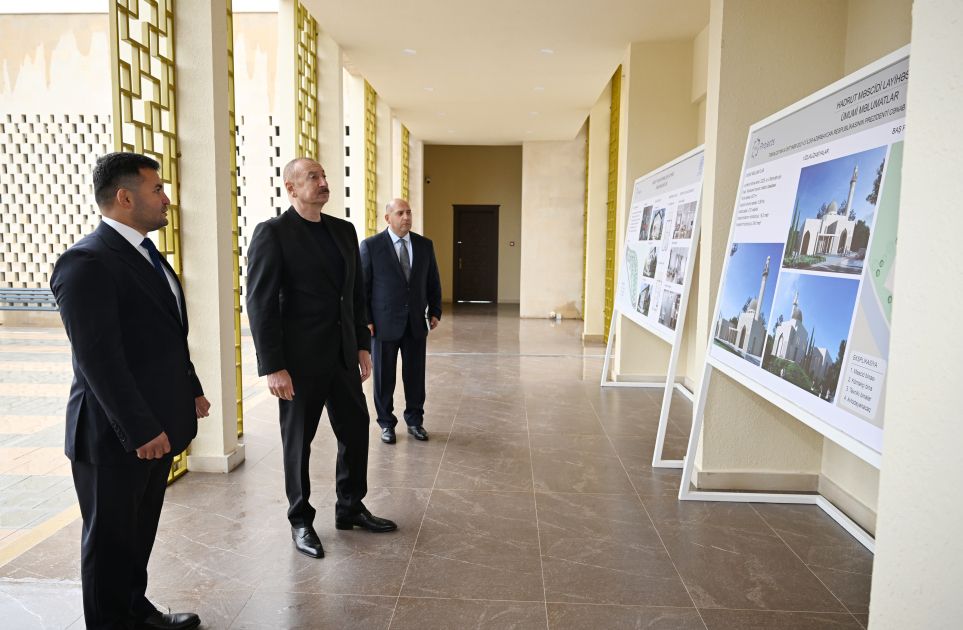 Prezident İlham Əliyevə qəsəbədə inşa edilmiş məscid barədə də məlumat verildi.