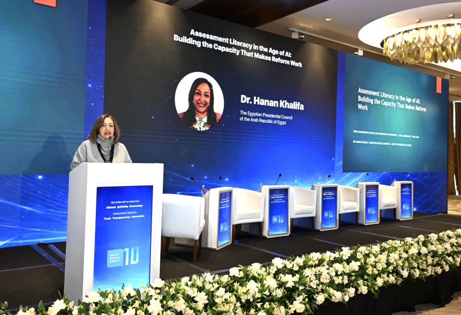 AZƏRTAC xəbər verir ki, bunu Dövlət İmtahan Mərkəzinin 10 illik yubileyinə həsr olunmuş “Qiymətləndirmə sistemləri: etimad, şəffaflıq və innovasiya” mövzusunda beynəlxalq elmi-praktik konfransda Misir Prezident Şurasının Təhsil Komitəsinin sədri Hanan Xalifa “Süni intellekt dövründə qiymətləndirmə savadlılığı: islahatların effektivliyini təmin edən bacarıqların formalaşdırılması” adlı məruzə ilə çıxış edərkən deyib.