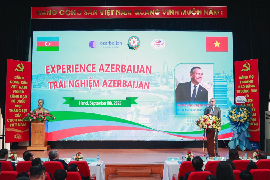 Florian Zenqstşmid Azərbaycanın turizm strategiyasını təqdim edərək, vyetnamlı turistləri qədim mədəni irs, müasir həyat tərzi və zəngin təbiəti özündə birləşdirən Azərbaycanı kəşf etməyə dəvət edib.