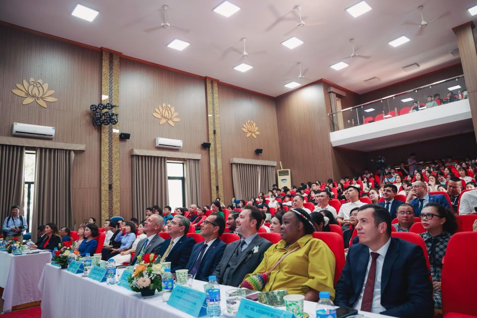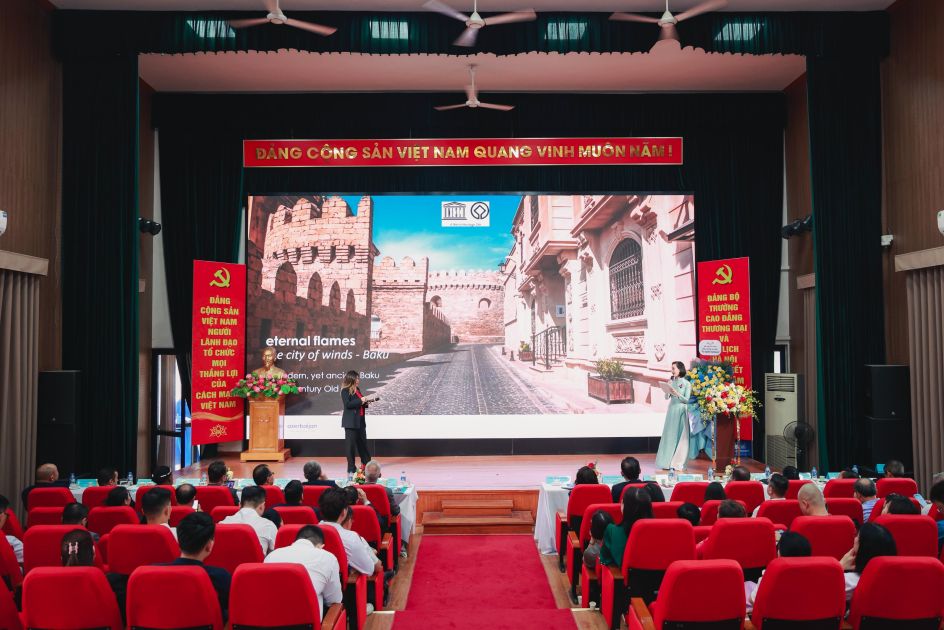 AZƏRTAC xəbər verir ki, ikitərəfli əlaqələrin möhkəmləndirilməsi və Azərbaycan mədəniyyətinin və turizm potensialının Vyetnamda tanıdılması məqsədilə təşkil olunan tədbirə Azərbaycan Turizm Bürosunun icraçı direktoru Florian Zenqstşmid, Vyetnam Milli Turizm Qurumunun sədr müavini xanım Nquyen Ti Hoa May, səfirlər, turizm mütəxəssisləri, Vyetnamın müxtəlif qurumlarından nümayəndələr və kollecin tələbələri qatılıblar.