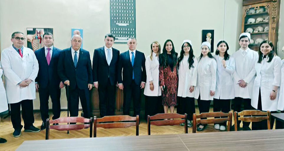 Keçən tədris ilinin sonunda Heydər Əliyev Fondunun vitse-prezidenti Leyla xanım Əliyevanın Azərbaycan Tibb Universitetinə gəlişi professor və müəllimlərimiz tərəfindən məmnunluqla qarşılandı. Görüş zamanı Leyla xanım Əliyeva universitetin İnsan anatomiyası və tibbi terminologiya kafedrasında tədris prosesi ilə yaxından maraqlandı, gələcək nəsil həkimlərinin ərsəyə gəlməsi üçün yaradılmış şəraitlə tanış oldu. Kafedramızla yaşıd olan və onun nəzdindəki muzeyə böyük maraq göstərdi, unikal eksponatların tarixçəsini dinlədi. Daha sonra Tədris Mərkəzində ən müasir tələblərə cavab verən mulyajları, anatomik planşeti və süni meyit preparatını nəzərdən keçirdi, problemlərimizlə maraqlandı, tövsiyələrini verdi.