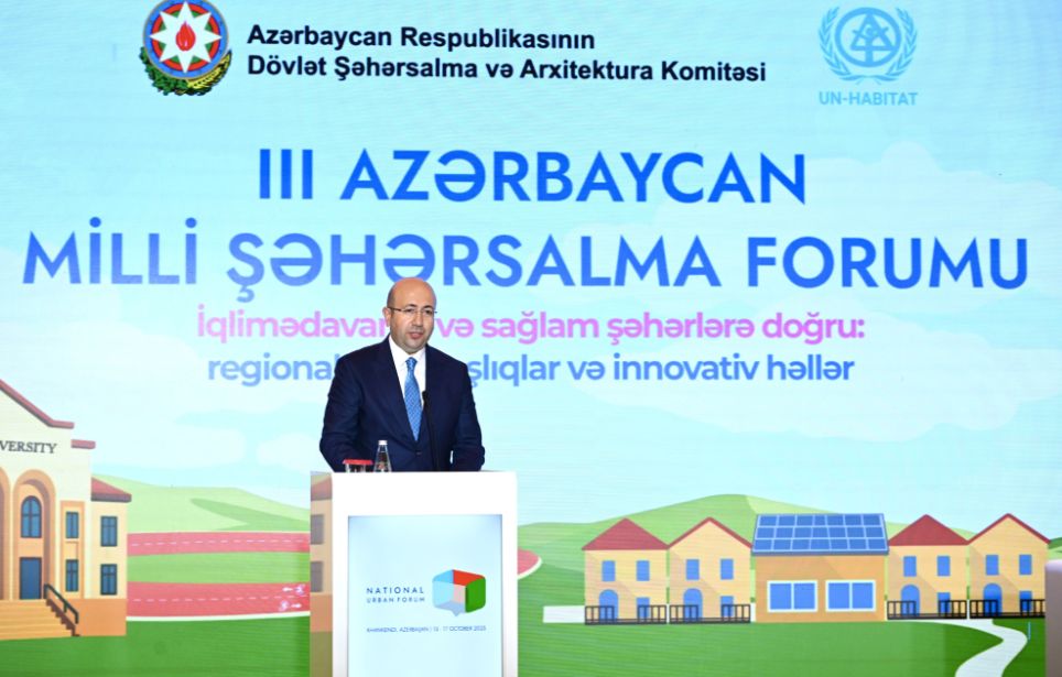 Bu gün III Azərbaycan Milli Şəhərsalma Forumu (NUFA3) öz işini başa çatdırdı. Forum Azərbaycan Respublikasının Dövlət Şəhərsalma və Arxitektura Komitəsi və BMT-nin Məskunlaşma Proqramı (UN-Habitat) tərəfindən birgə təşkil olunub və “İqlimədavamlı və sağlam şəhərlərə doğru: regional tərəfdaşlıqlar və innovativ həllər” mövzusunu əhatə edib.