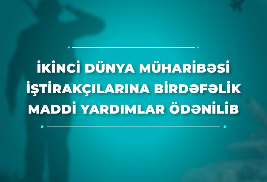 Prezident İlham Əliyevin bu il aprelin 21-də imzaladığı Sərəncama əsasən, 1941–1945-ci illər İkinci Dünya müharibəsi iştirakçılarına və Sərəncamda nəzərdə tutulan digər şəxslərə birdəfəlik maddi yardımların ödənişi həyata keçirilib.