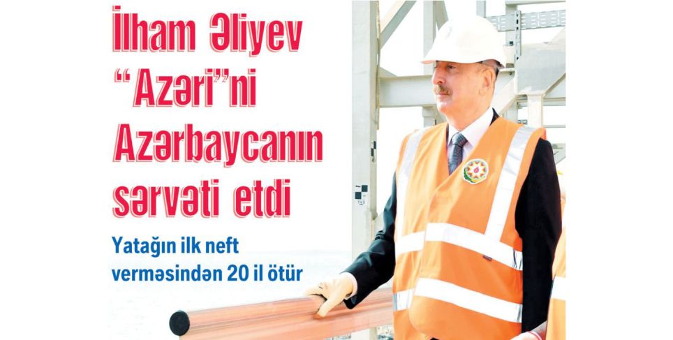 Azərbaycanı dirçəldən, beynəlxalq enerji "ailə"sinə qovuşduran "Əsrin müqaviləsi"nin salnaməsində 20 il əvvəlin bugünkü günü - fevralıın 18-nin də xüsusi önəmi var. Məhz həmin vaxt AÇG layihəsi özünün kulminasiya nöqtəsinə çatdı."Azəri" yatağından ilk neft alındı.