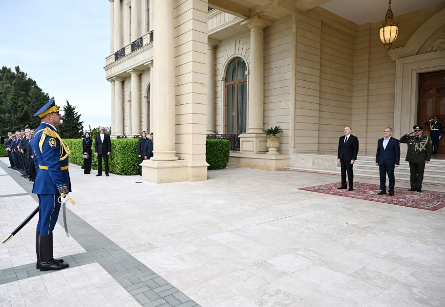 Fəxri qarovul dəstəsi hərbi marşın sədaları altında Azərbaycan Prezidenti İlham Əliyevin və İran Prezidenti Məsud Pezeşkianın qarşısından keçdi.