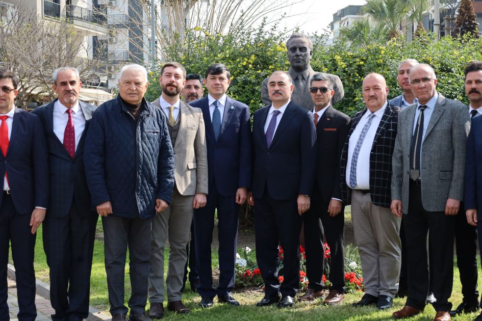 AZƏRTAC xəbər verir ki, Türkiyənin İzmir şəhərində səfərdə olan nümayəndə heyəti, əvvəlcə bu şəhərin Karşıyaka rayonu ərazisində yerləşən Heydər Əliyev Parkını və Ümummilli Liderin burada ucaldılan büstünü ziyarət edib.