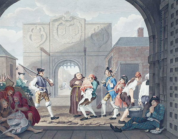O, bu şəkli həbsindən sonra ərsəyə gətirmişdi. Fransaya səfəri zamanı Calaisdə gözləyərkən ingilis silahları ilə bəzədilmiş liman qapısı və asma körpünün eskizini çəkməyə başlamışdı. Onun bu davranışı diqqət çəkərək şübhə doğurmuşdu və həbs edilərək qubernatorun hüzuruna aparılmışdı. Burada olarkən fransızların təkidi ilə karikaturalar çəkərək bacarıqlarını nümayiş etdirməsini ondan tələb etmişdilər. Hoqartın fransızlara qarşı antipatiyası bu hadisələrdə daha da kəskinləşmişdi.