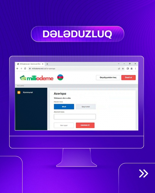 Kiberdələduzlar tərəfindən “milliodeme.net” saxta ödəniş portalı yaradılıb.