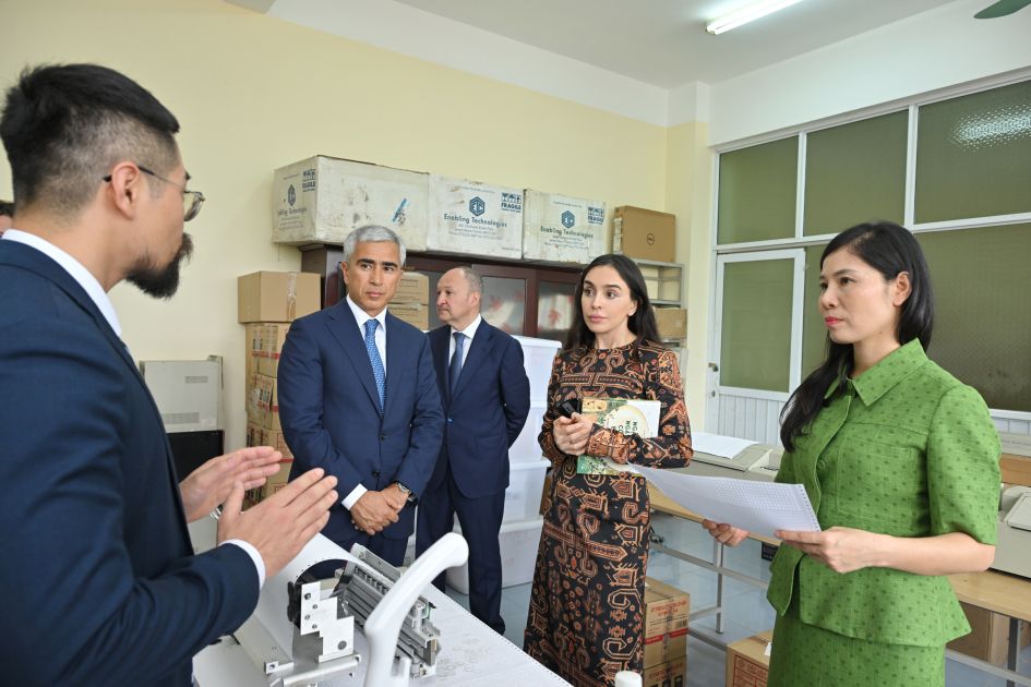 Leyla Əliyeva Hanoyda görmə qabiliyyəti məhdud şəxslər üçün məktəbdə olub