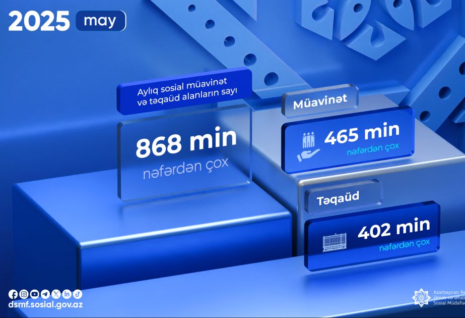 Bu ilin may ayında aylıq sosial müavinət və təqaüd alanların sayı 868 min nəfərdən çox olub.