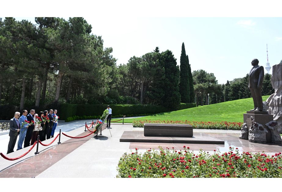 AZƏRTAC xəbər verir ki, nümayəndə heyəti Ulu Öndərin məzarı üzərinə gül dəstələri düzüb, xatirəsini dərin hörmət və ehtiramla anıb.