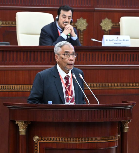 Sonra Pakistan İslam Respublikası Senatının sədri Syed Yusuf Raza Gilani çıxışında Azərbaycan üçün əlamətdar hadisə - ölkə Konstitusiyasının qəbul edilməsinin 30 illiyi münasibətilə keçirilən tədbirdə iştirakından məmnunluğunu ifadə edib. O, Konstitusiyanın dövlət və xalq arasında körpü rolunu oynadığını, cəmiyyətdə ədalətin təmin edilməsi, dövlətçiliyin əsaslarının müəyyənləşdirilməsi ilə bağlı məsələlərin, insanların hüquq və azadlıqlarının təsbit edildiyi ali sənəd olduğunu bildirib. Ümummilli Lider Heydər Əliyevin Azərbaycanın demokratik prinsiplərə əsaslanan Konstitusiyasının hazırlanmasında və qəbul edilməsində müstəsna xidmətlərini xüsusi qeyd edib.