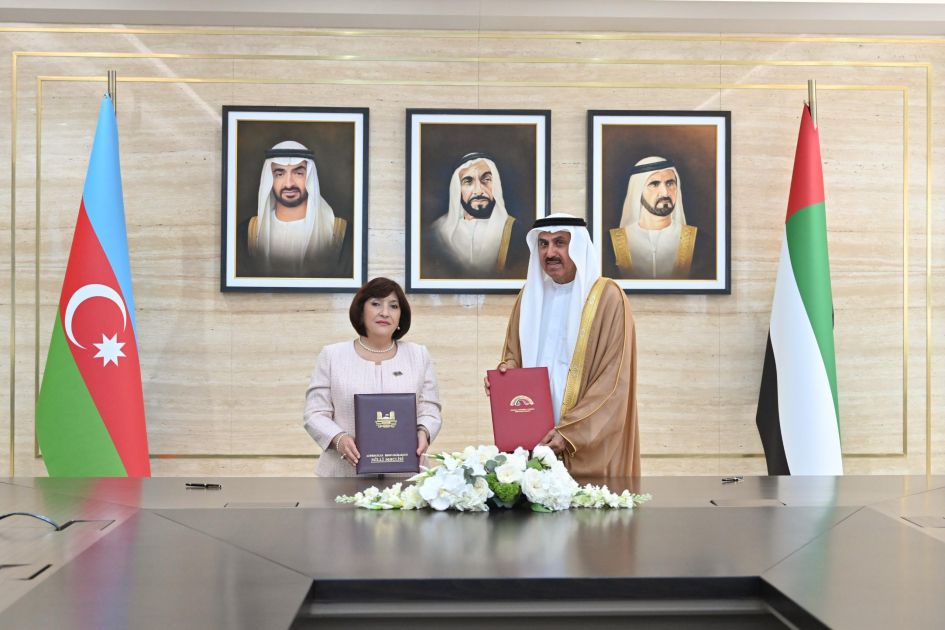 Parlamentin Mətbuat və ictimaiyyətlə əlaqələr şöbəsindən AZƏRTAC-a bildirilib ki, Azərbaycan Respublikası Milli Məclisi ilə Birləşmiş Ərəb Əmirlikləri Federal Milli Şurası arasında Anlaşma Memorandumunu iki ölkənin parlament sədrləri Sahibə Qafarova və Saqr Qobaş imzalayıblar.