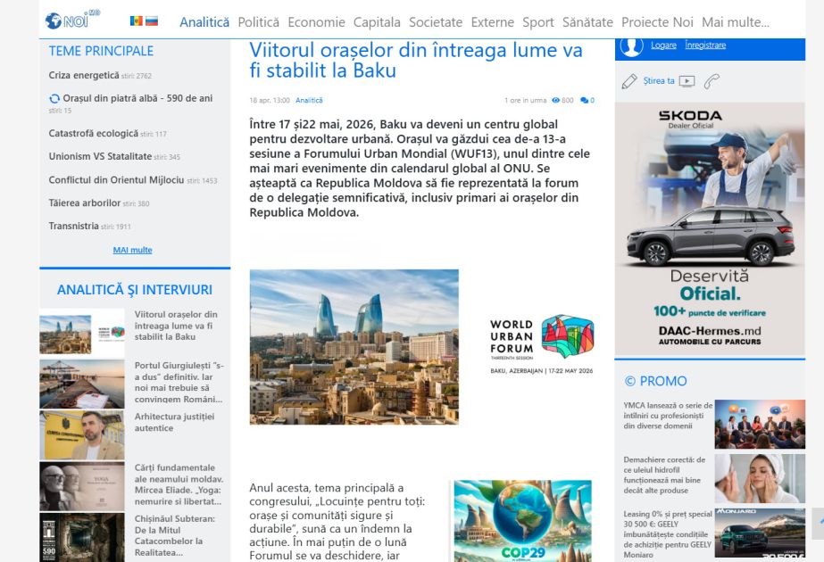 Moldova mediası: Dünya şəhərlərinin gələcəyi Bakıda müəyyənləşəcək