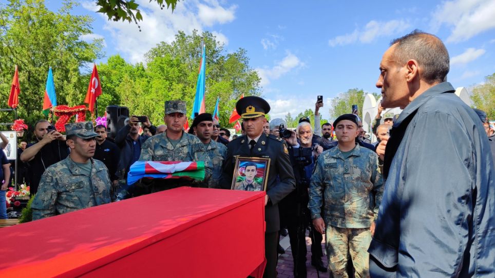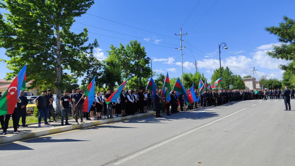 Şəhidin üçrəngli bayrağa bükülmüş cənazəsi hərbçilərin müşayiəti ilə mərasim yerinə gətirilib. Yaylım atəşi açılıb, “Qurani-Kərim”dən ayələr oxunub.