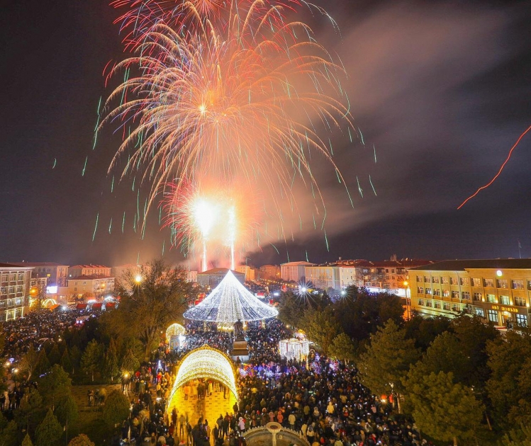 Yeni ilin gəlişi münasibətilə Naxçıvan şəhərində möhtəşəm atəşfəşanlıq olub. Bu qədim diyarın sakinləri 2024-cü ili xoş ovqat və böyük təntənə ilə qarşılayıblar.