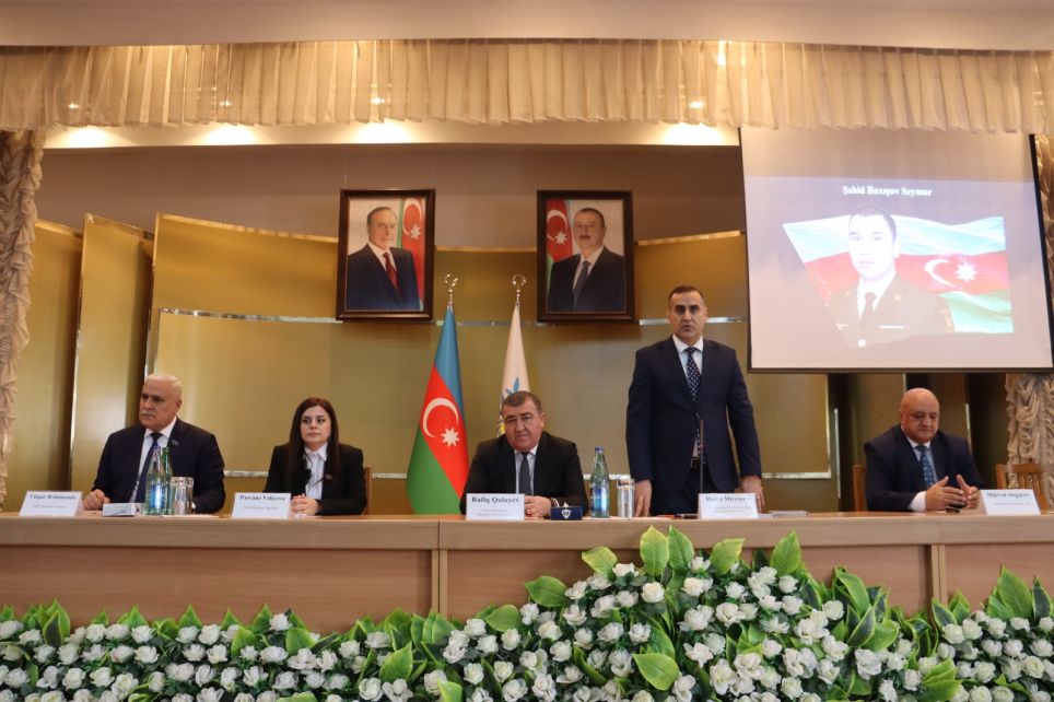 Çıxış edən Xətai rayonu İcra Hakimiyyətinin başçısı Rafiq Quluyev Azərbaycan oğullarının şücaəti və qəhrəmanlığı və Ali Baş Komandanın uğurlu hərbi rəhbərliyi nəticəsində torpaqlarımızın işğaldan azad edildiyini bildirib və şəhidlərimizin bu fədakarlığının Azərbaycan xalqının yaddaşında əbədi qalacağını vurğulayıb.