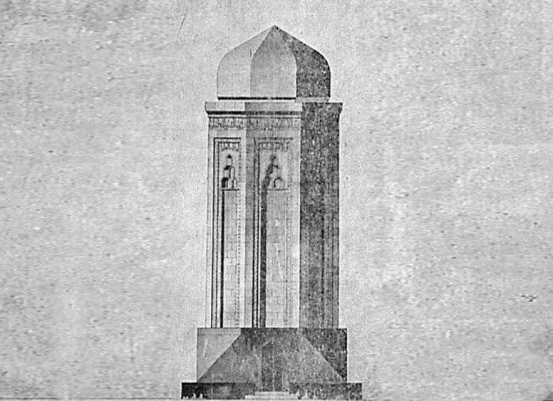 1925-ci ildən başlayaraq məzarın üzərində tikiləcək məqbərə üçün müxtəlif layihələr təklif edilirdi. 1926-cı ildə Azərbaycan Politexnik İnstitutunun tələbələri tərəfindən işlənmiş layihə müsabiqədə birinci yeri tutur və hökumət səviyyəsində bu layihə əsasında məqbərənin inşasına razılıq verilir. Lakin naməlum səbəblər üzündən layihənin icrası təxirə salınır. 1930-cu ildə Şeyx Nizaminin qəbri ikinci dəfə açılır və 1932-ci ildə nəhayət, qəbrin üzərinə müvəqqəti abidə qoyulur.