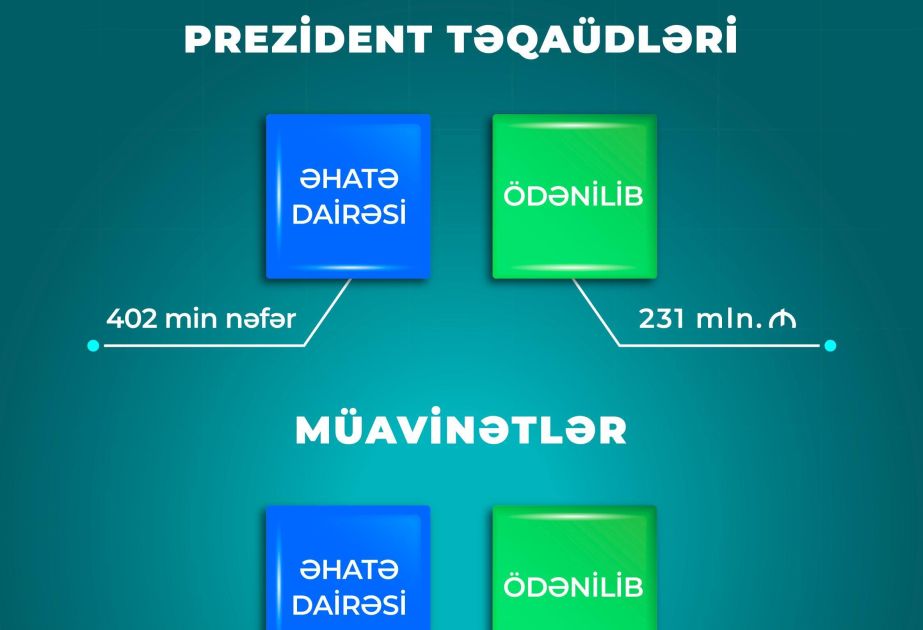 Nazirliyin İctimaiyyətlə əlaqələr şöbəsindən AZƏRTAC-a verilən məlumata görə, həmin dövrdə əhaliyə sosial müavinətlər üzrə 367 milyon manat, Prezident təqaüdləri üzrə 231 milyon manat ödənilib.