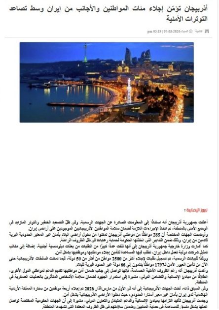 Azərbaycanın həyata keçirdiyi təxliyə tədbirləri İordaniya mediasında