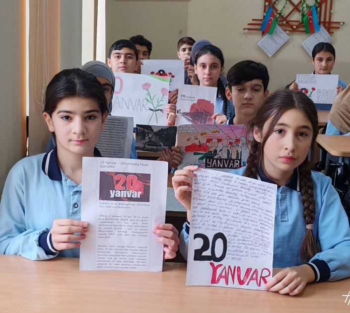BŞTİ-dən AZƏRTAC-a bildirilib ki, 20 Yanvar faciəsinin 36-cı ildönümü ilə əlaqədar keçirilən tədbirlər Dövlət Himninin səsləndirilməsi və Vətən şəhidlərinin xatirəsinin bir dəqiqəlik sükutla yad edilməsi ilə başlayıb. Şagirdlərə 1990-cı ilin 20 Yanvar hadisələrinin baş verdiyi tarixi dövr haqqında ətraflı məlumat verilib, xalqımızın azadlıq və müstəqillik uğrunda apardığı mübarizə əsl qəhrəmanlıq nümunəsi kimi dəyərləndirilib.