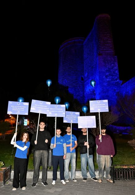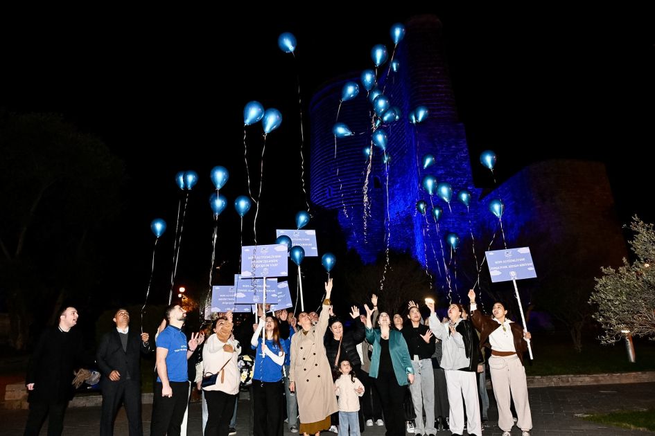 Sonda autizmlə bağlı plakatlar qaldırılıb, "Autizm: Tanı, qəbul et, dəstək ol" şüarı səsləndirilib, havaya mavi şarlar buraxılıb.