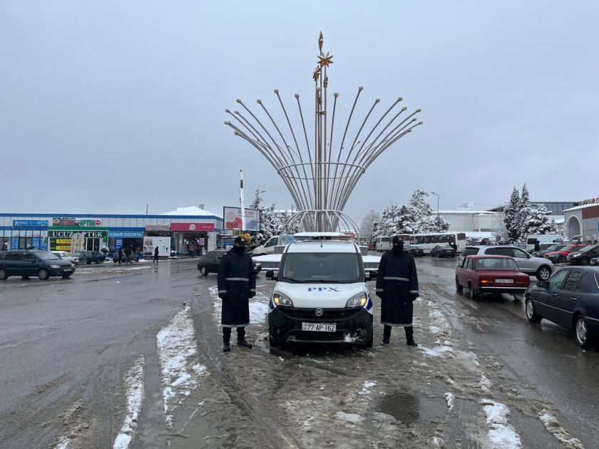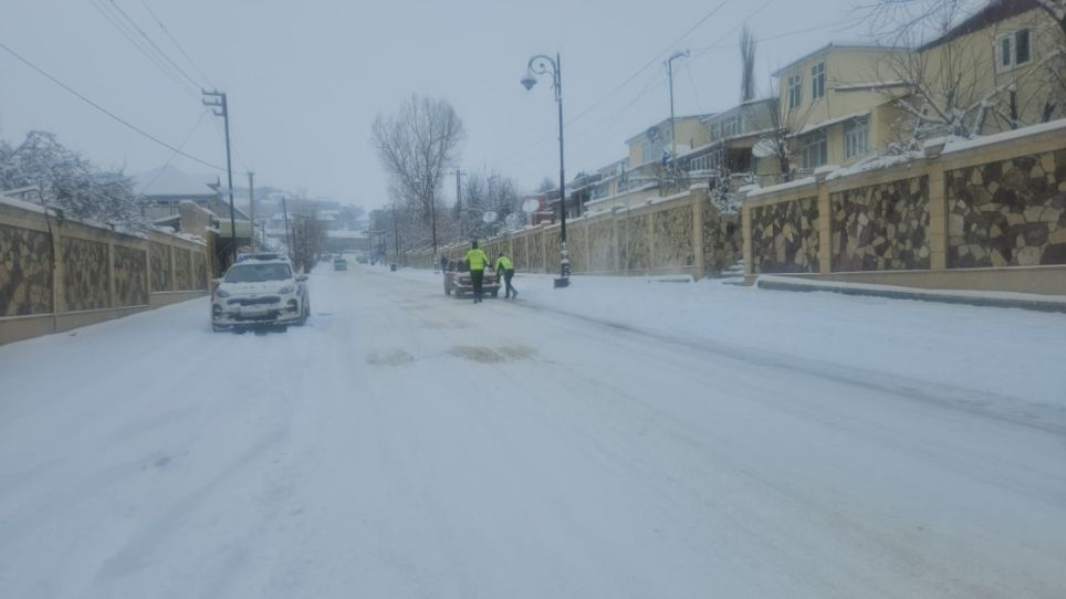 Gecə saatlarından etibarən təşkil olunan fasiləsiz xidmət zamanı digər dövlət qurumları ilə birgə yollar və yol nişanları qardan və buzdan təmizlənir, sürüşmə ehtimalı olan ərazilərə qum və duz səpilir.