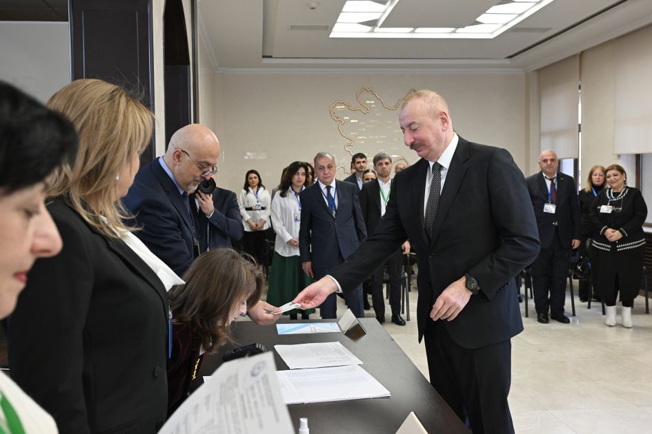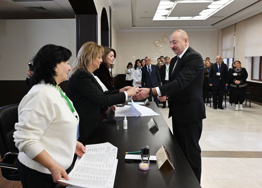 AZƏRTAC xəbər verir ki, Azərbaycan Respublikasının Prezidenti İlham Əliyev Bakı şəhərinin 7 saylı Səbail seçki dairəsinin 6 nömrəli orta məktəbdə yerləşən 1 saylı seçki məntəqəsində səs verib.
