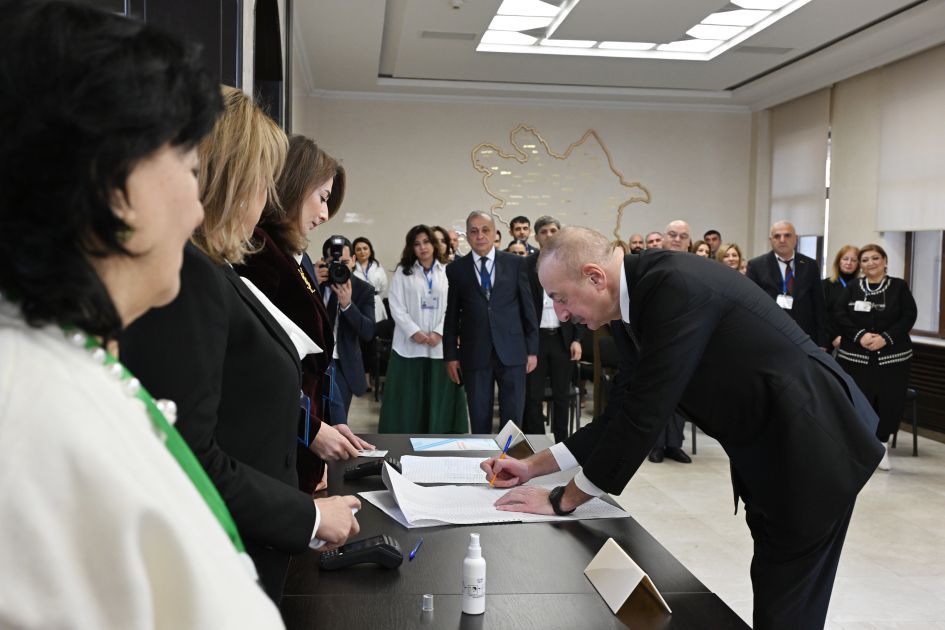 Prezident İlham Əliyev 1 saylı seçki məntəqəsində səs verib