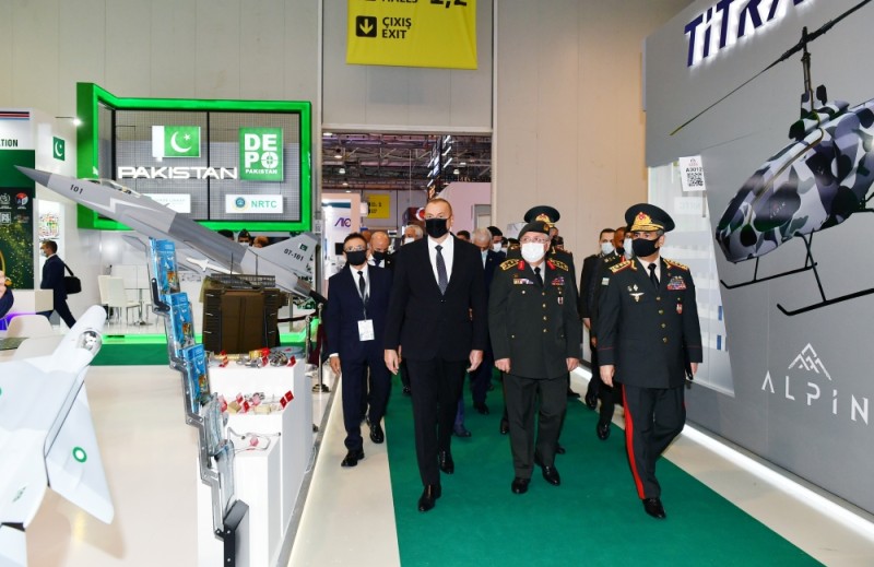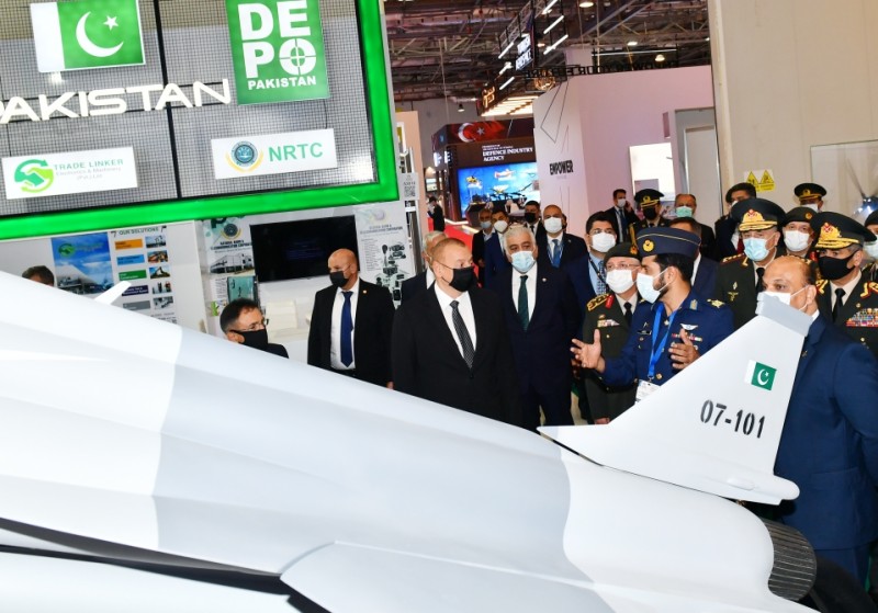Dövlətimizin başçısı Pakistan İslam Respublikasının pavilyonları ilə də tanış oldu. Bildirildi ki, ölkəmizlə hərbi əməkdaşlıq edən Pakistanda istehsal olunan hərbi məhsullar hərbi sənaye kompleksinin bütün istiqamətlərini əhatə edir. Bildirildi ki, “Pakistan Ordnance Factories” (POF) şirkəti beynəlxalq standartlara uyğun geniş çeşiddə silah-sursat istehsal edən ən böyük dövlət müdafiə sənayesi kompleksidir. Pakistan Silahlı Qüvvələrinin və hüquq-mühafizə orqanlarının aparıcı təchizatçısı olmaqla yanaşı, POF dünyanın bir çox ölkəsinə məhsul ixrac edir. POF-un törəmə şirkətləri məhsullarına görə yüksək nüfuza malikdir. “Pakistan Ordnance Factories” şirkəti ISO-9001, ISO-14001, ISO-17025 vǝ OHSAS 18001 kimi beynəlxalq keyfiyyət sertifikatlarını əldə edib.
