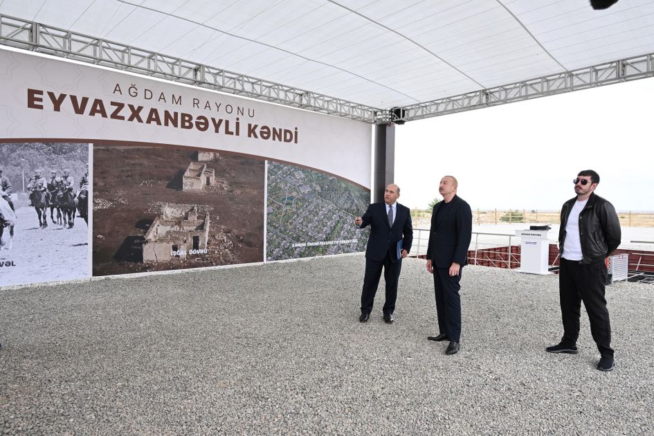 Azərbaycan Respublikasının Prezidenti İlham Əliyev və oğlu Heydər Əliyev sentyabrın 19-da Ağdam rayonunun Eyvazxanbəyli kəndinin təməlqoyma mərasimində iştirak ediblər.