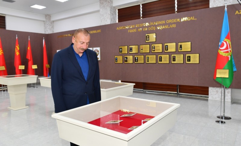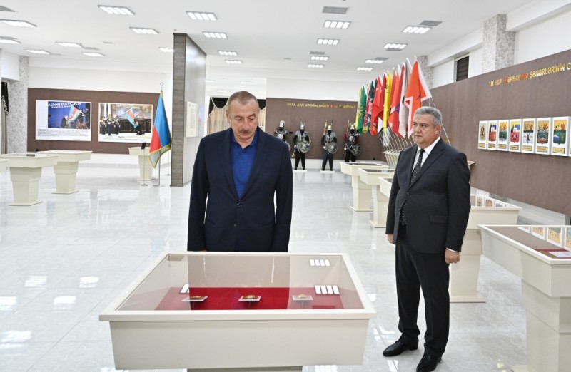 Sonra Prezident İlham Əliyev Dövlət Rəmzləri Muzeyi ilə tanış oldu.