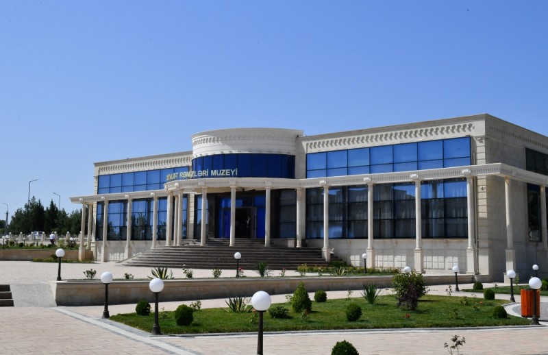 Məlumat verildi ki, muzeyin inşasına 2017-ci ilin dekabrında başlanılıb. Tikinti işləri cari ilin yanvarında başa çatdırılıb. Muzey binası sərgi zalından, inzibati və yardımçı otaqlardan ibarətdir. Sərgi zalında ümumilikdə 16 bölmə yaradılıb. Burada Azərbaycan xanlıqlar dövrünün xəritəsi, Orta əsrlərə aid döyüşçüləri əks etdirən manikenlər, həmin dövrdə xanlıqların istifadə etdiyi bayraqlar, XIX əsr Azərbaycan şəhərlərinin gerbləri, qədim metal sikkələr, kağız pullar, Azərbaycan Xalq Cümhuriyyəti, Azərbaycan SSR və müstəqillik dövrlərində qəbul edilmiş konstitusiyalar, gerblər, bayraqlar, Azərbaycan Respublikasının Silahlı Qüvvələrinin geyim formaları, ümummilli lider Heydər Əliyevin andiçmə mərasiminə dair fotoşəkillər, dövlət rəmzləri haqqında kəlamları, Azərbaycan Respublikasının Prezidenti İlham Əliyevin andiçmə, Bayraq meydanlarının açılışı mərasimlərinə dair fotoşəkillər, poçt markaları, orden və medallar nümayiş olunur.