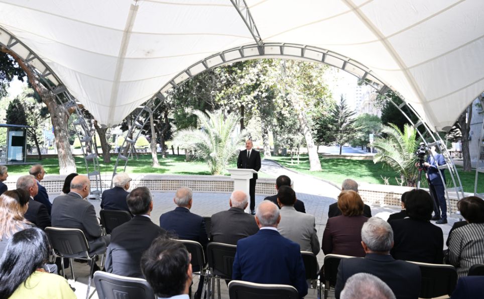 Bildiyiniz kimi, üç il əvvəl Aşıq Ələsgərin adının əbədiləşdirilməsi üçün mən iki Sərəncam imzalamışam. Bir Sərəncam əsasında Aşıq Ələsgərin 200 illik yubileyi dövlət səviyyəsində qeyd edildi. İkinci Sərəncam əsasında onun abidəsinin ucaldılması məsələsi nəzərdə tutulurdu. Bu gün şəhərimizin bu gözəl yerində, deyə bilərəm ki, şəhərimizin mərkəzində, gözəl parkda Aşıq Ələsgərin abidəsi ucaldılıb.
