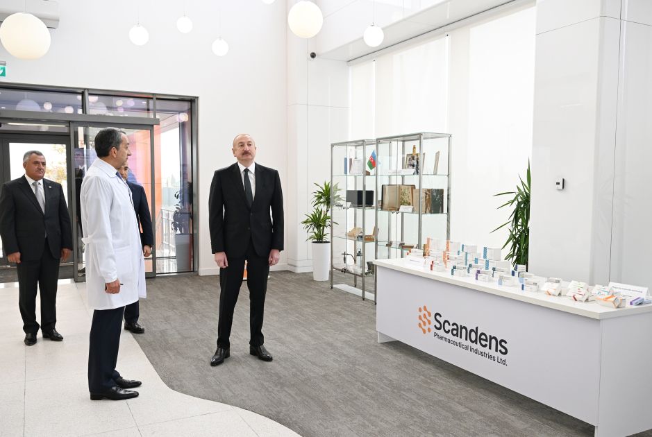 Azərbaycan Respublikasının Prezidenti İlham Əliyev Abşeron rayonunun Hökməli qəsəbəsində “Scandens Pharmaceutical Industries Ltd” MMC-nin dərman preparatları istehsalı müəssisəsinin açılışında iştirak edib.