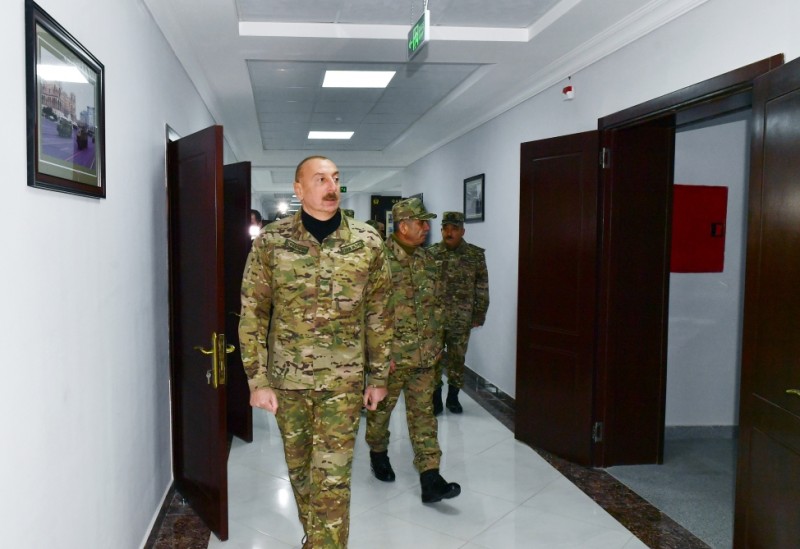 Müzəffər Ali Baş Komandan İlham Əliyev hərbi şəhərciyin qərargah binası ilə tanış oldu.