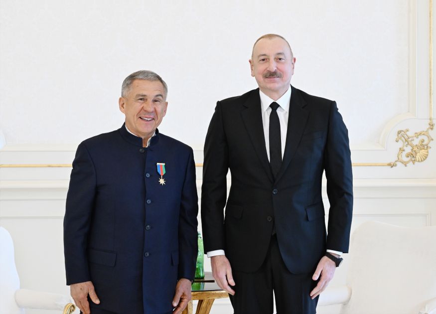 AZƏRTAC xəbər verir ki, əvvəlcə Rusiya Federasiyasının Tatarıstan Respublikasının Rəisi Rüstəm Minnixanovun Azərbaycanın “Dostluq” ordeni ilə təltifedilmə mərasimi oldu. Prezident İlham Əliyevin Sərəncamına əsasən, Azərbaycan Respublikası ilə Rusiya Federasiyası arasında dostluq və əməkdaşlıq əlaqələrinin inkişafında xüsusi xidmətlərinə görə Rüstəm Minnixanov “Dostluq” ordeni ilə təltif edilib.