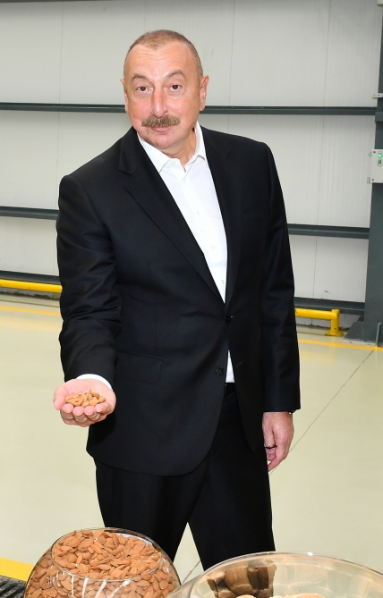 Prezident İlham Əliyevin və birinci xanım Mehriban Əliyevanın fəaliyyəti ilə tanış olduqları “Grand-Agro İnvitro” Məhdud Məsuliyyətli Cəmiyyətinin müəssisəsi və “Azbadam” Məhdud Məsuliyyətli Cəmiyyətinin açılışı olan badam emalı zavodu məhz qeyri-neft sektoru və kənd təsərrüfatının inkişaf konsepsiyasının uğurla reallaşdırılmasının nəticəsidir.